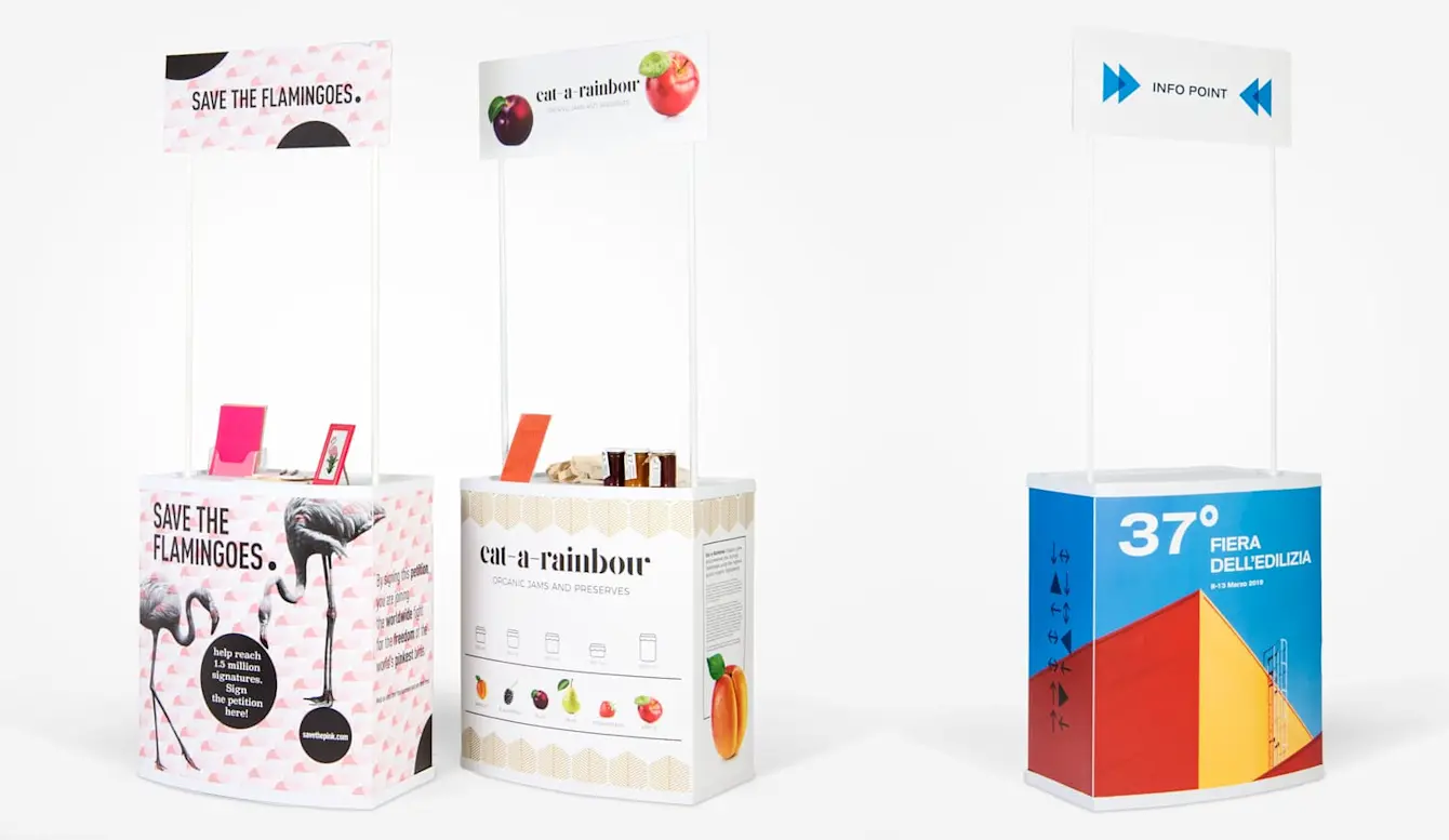 Konstruktionen är speciellt anpassad för marknadsföring av ditt varumärke under event och mässor: du kan inför varje nytt tillfälle byta grafik, genom att använda våra flyttbara dekaler. Missa inga möjligheter; anpassa dig efter varje tillfälle och välj att presentera sig för bästa möjliga sätt för din målgrupp.
